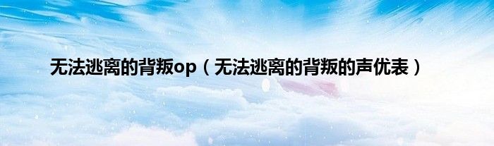 大家好,无法逃离的背叛op,无法逃离的背叛的声优表很多人还不知道,现在让我们一起来看看吧!
