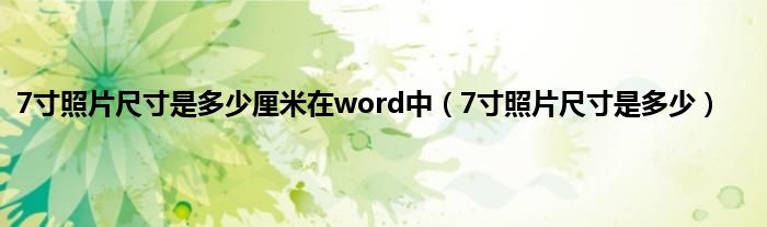 本文,7寸照片尺寸是多少厘米在word中,7寸照片尺寸是多少到此就分享完毕,希望对大家有所帮助。