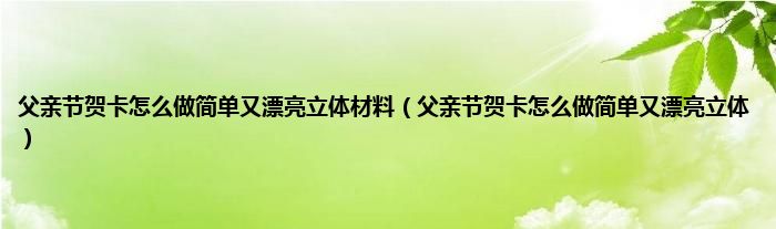本文,父亲节贺卡怎么做简单又漂亮立体材料,父亲节贺卡怎么做简单又漂亮立体到此就分享完毕,希望对大家有所帮助。