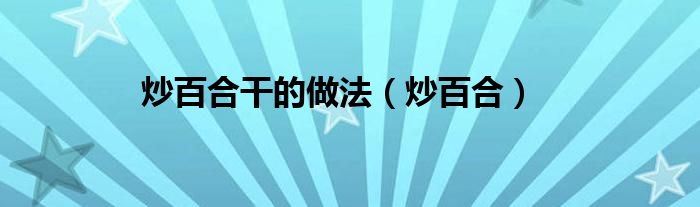 以上就是【炒百合干的做法,炒百合】相关内容。