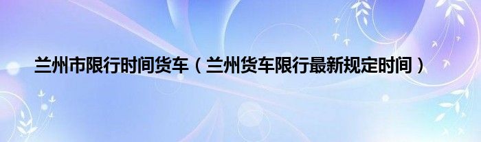 大家好,兰州市限行时间货车,兰州货车限行最新规定时间很多人还不知道,现在让我们一起来看看吧!