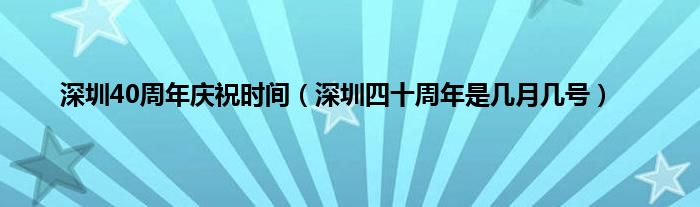 大家好,深圳40周年庆祝时间,深圳四十周年是几月几号很多人还不知道,现在让我们一起来看看吧!