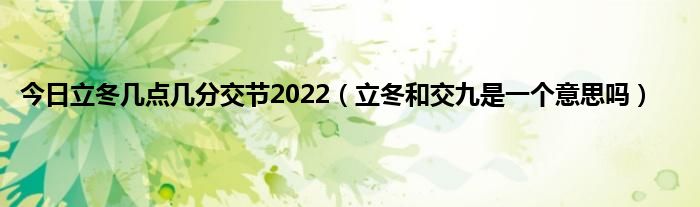 本文,今日立冬几点几分交节2022,立冬和交九是一个意思吗到此就分享完毕,希望对大家有所帮助。