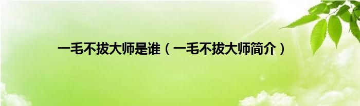 大家好,一毛不拔大师是谁,一毛不拔大师简介很多人还不知道,现在让我们一起来看看吧!