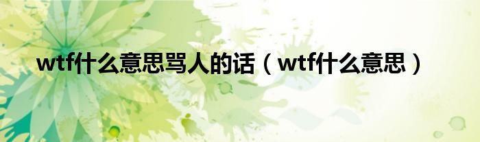 本文,wtf什么意思骂人的话,wtf什么意思到此就分享完毕,希望对大家有所帮助。