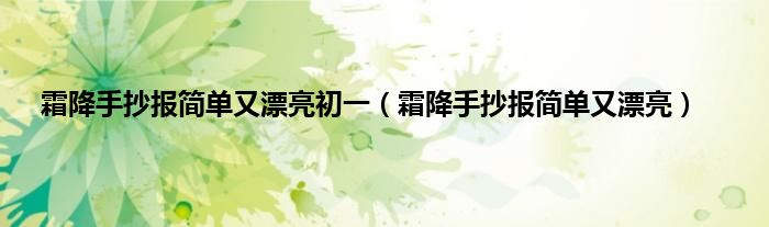 本文,霜降手抄报简单又漂亮初一,霜降手抄报简单又漂亮到此就分享完毕,希望对大家有所帮助。