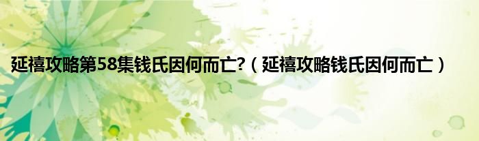 本文,延禧攻略第58集钱氏因何而亡?,延禧攻略钱氏因何而亡到此就分享完毕,希望对大家有所帮助。