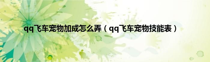 以上就是【qq飞车宠物加成怎么弄,qq飞车宠物技能表】相关内容。