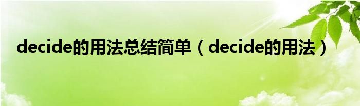 大家好,小问来为大家解答以上问题。decide的用法总结简单,decide的用法这个很多人还不知道,现在让我们一起来看看吧!