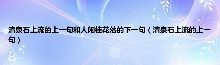 本文,清泉石上流的上一句和人闲桂花落的下一句,清泉石上流的上一句到此就分享完毕,希望对大家有所帮助。