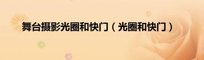 以上就是【舞台摄影光圈和快门,光圈和快门】相关内容。